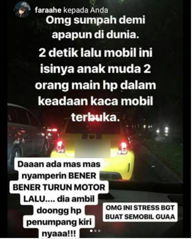 Pemilik akun @faraahe yang saat itu sedang mengendarai mobil di belakang dua remaja tadi langsung syok.